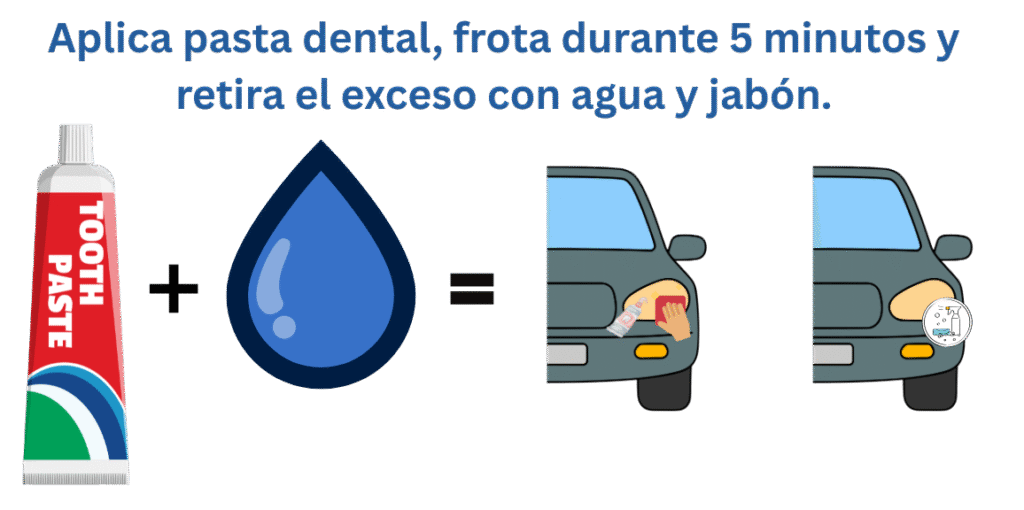Es probable que ya hubieras escuchado de este método o que te estés preguntando si esto tiene sentido. Antes de ir a por la pasta de dientes, esto solo funciona para faros que estén ligeramente opacos o amarillos. La mayor parte de las pastas de dientes cuenta con detergentes y agentes pulidores que liman ligeramente la capa afectada. Todo lo que debes hacer es limpiar previamente los faros, aplicar la pasta de dientes y realizar movimientos circulares, dejar actuar la pasta por 2 – 3 minutos y retirar cualquier excedente con agua. Por lo general, esto les dará un mejor aspecto y hará que no tengas problemas.